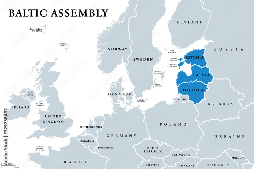 Baltic states Estonia, Latvia and Lithuania pink highlighted in